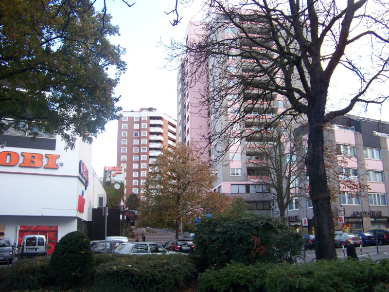 Nahe der Einmündung der Tiroler Straße in die Stresemannallee wurden um 1970 vier 16-geschossige Punkthäuser gebaut.